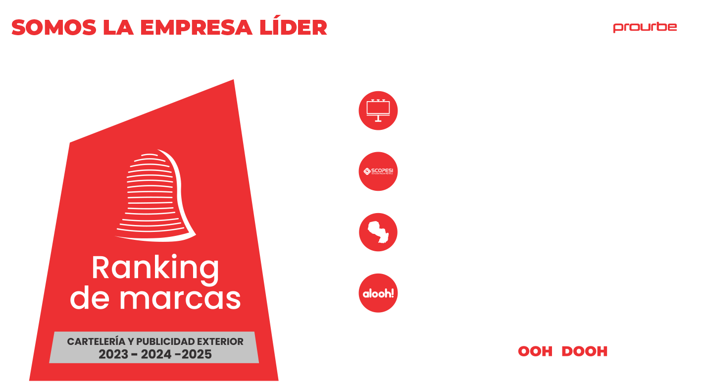 Somos especialistas en soluciones integrales de publicidad exterior —estática y digital— con cobertura nacional y más de 1.000 espacios distribuidos en 13 departamentos del país. Nuestra presencia estratégica y enfoque innovador nos permite conectar marcas con personas, todos los días. Líderes del mercado paraguayo en formatos outdoor e indoor, somos la única empresa con presencia en los principales shoppings del país. Ofrecemos una amplia gama de formatos: soportes digitales, piezas estáticas y espacios para exhibiciones con activaciones de marca. Contamos con un equipo de más de 50 colaboradores, y operamos cumpliendo estrictamente todas las normativas y leyes vigentes en materia de seguridad.